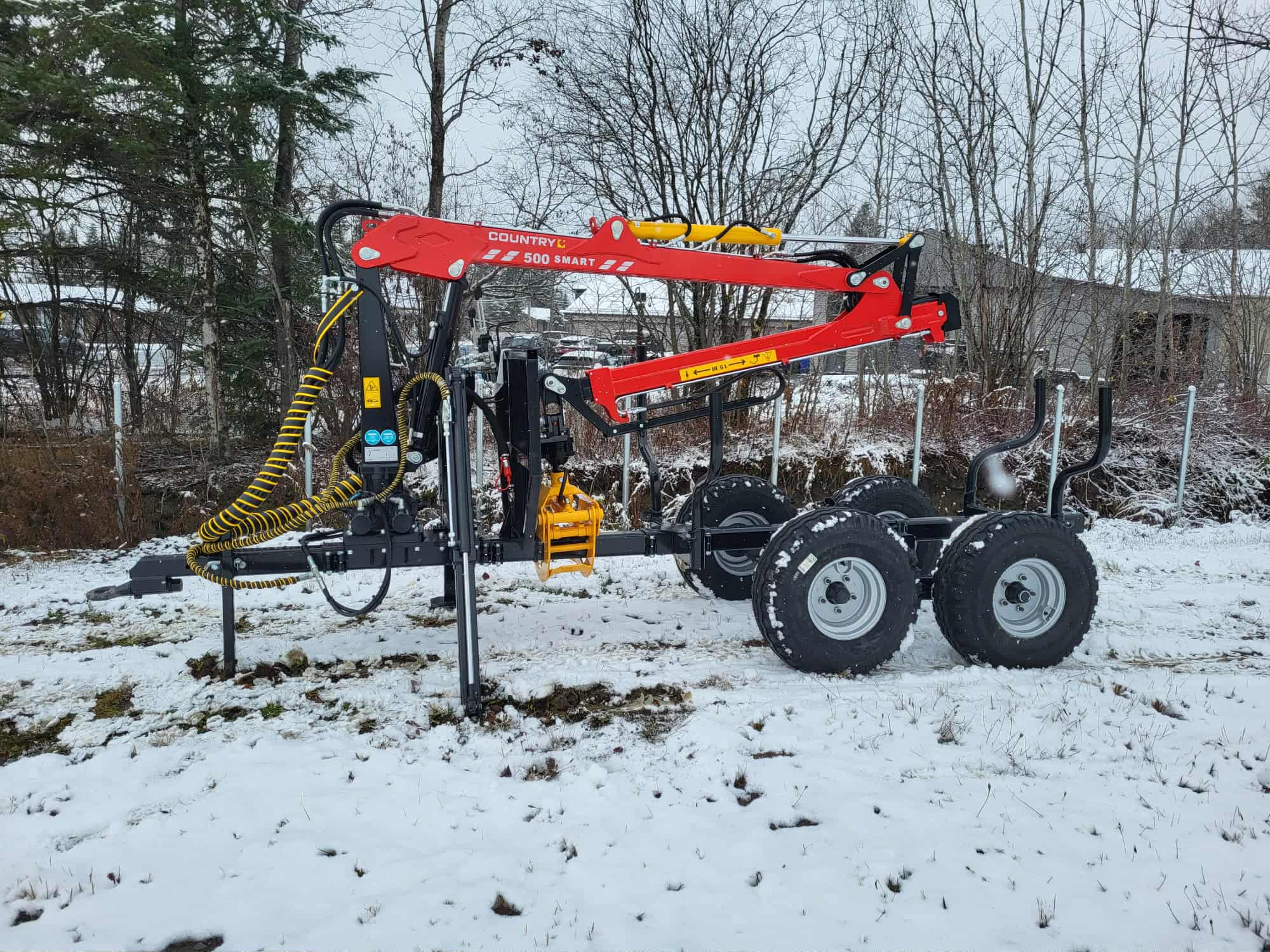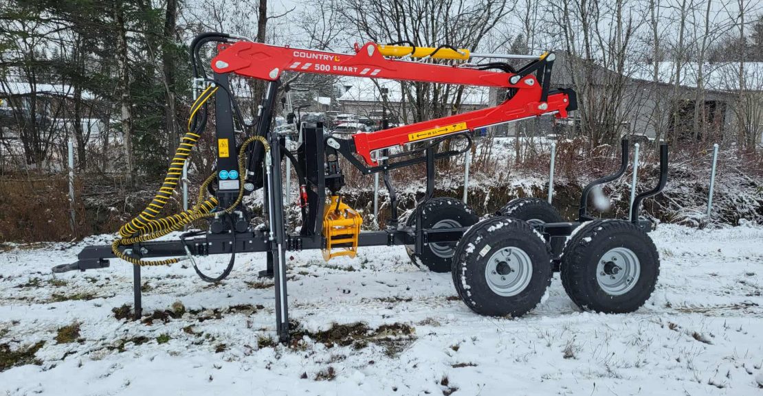 Chargeuse à bois Country 500 smart, neuve, 2026, crémaillère double, boom extensible de 3,9′. Financement disponible 62$/semaine. 418-228-2232.